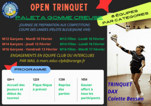 OPEN TRINQUET – Gomme Creuse Filles et Garçons – M12 à M16